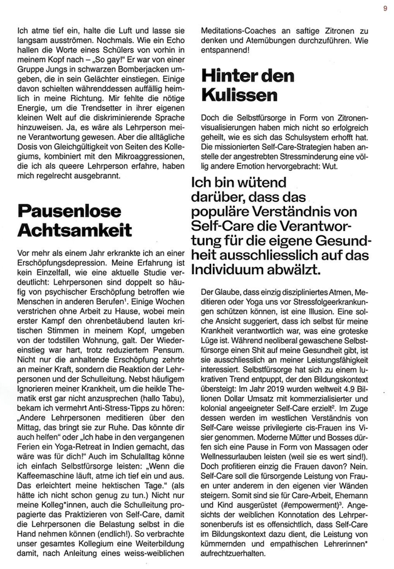 Artikel zum Schwerpunktthema der FLINTA*-Ausgabe "Alle oder Niemand. vom Einzelnen zum Kollektiv"